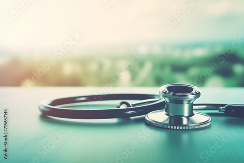 Medical equipment: blue stethoscope and tablet on white background. Medical equipment