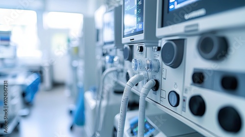 Medical Equipment with Corrugated Tubes and Control Panel in a Hospital Room