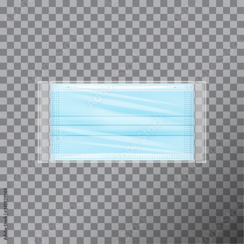 Medical face mask in transparent packaging. Vector realistic mockup on transparent background
