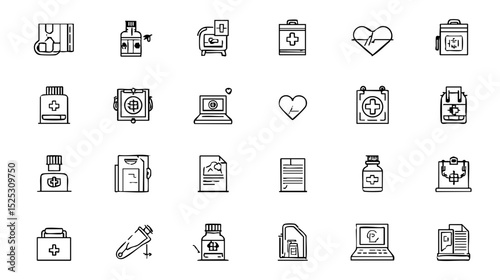 Medical Icon Set - Clean Black & Grey Line Art for Web & Print