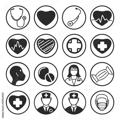 Medical Icon Set in Black and White Healthcare Symbols on Transparent Background collection medical icons black white featuring symbols healthcare medicine medical professionals The transparent