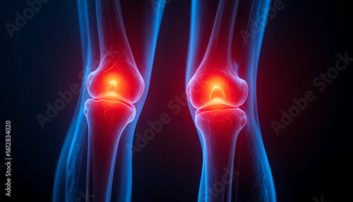 Medical Illustration of Human Knees with Arthritis Showing Inflammation and Joint Pain