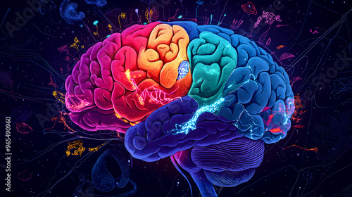 medical illustration showing how the brain's regions correspond to different cognitive and motor functions