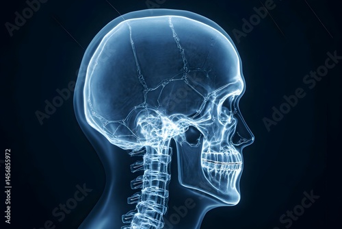 Medical Imaging X Ray of Human Skull and Cervical Spine Anatomy for Healthcare Professionals.