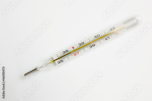 medical mercury thermometer isolated on white background. Coronavirus and isolation.