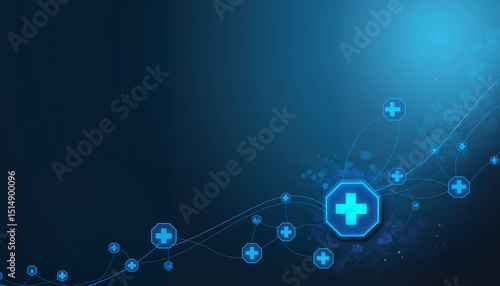 Medical plus signs, network connections, blue background, for healthcare promotion, with space for copy