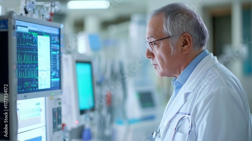 Medical Professional Observes Vital Signs on Monitor in Hospital