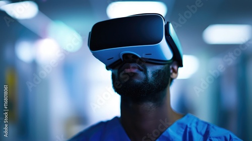 Medical Professional Using Virtual Reality Headset in Hospital Setting