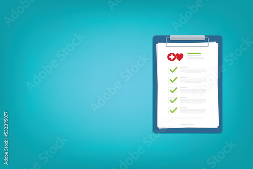Medical report, medical document, health insurance concepts. Flat design. Vector illustration