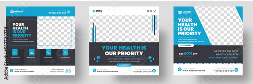 Medical Social Media Post Template, Healthcare Social Media Banner Template, Medical and healthcare social media post template. health doctor social media post banner. Medical Health banner.