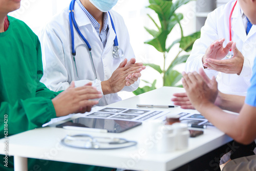 Medical staff meeting to discuss Vinichaya disease by using a tablet, graph paper showing results. and many medical devices that was explained at the meeting medical concept