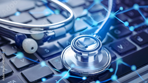 Medical stethoscope lying on Keyboard, concept for ehealth or digital health