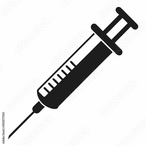 Medical syringe vector icon silhouette. Syringe with needle illustration.