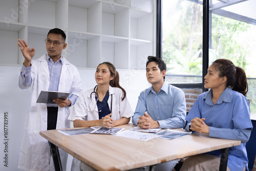 Medical team having a meeting in conference room at hospital, Medical technology and health care concept.