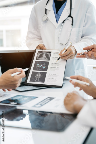 Medical team working on digital tablet healthcare doctor technology tablet using computer analyzed the results of medical reports at the hospital.