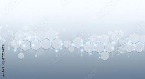 Medical technology and scientific innovation concept with a complex honeycomb pattern and abstract molecules, ideal for healthcare, research, and scientific presentations