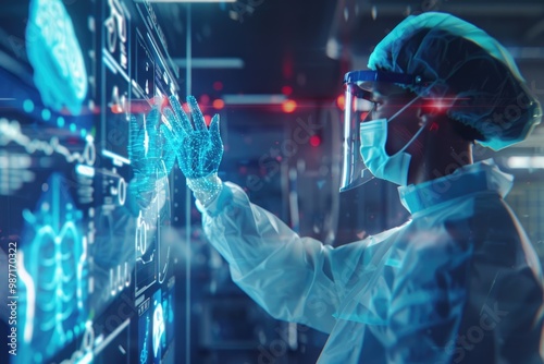 Medical worker embraces AI and deep learning for future health.