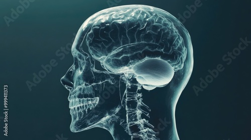 Medical x-ray of head, transparent skull and brain, 3D illustration