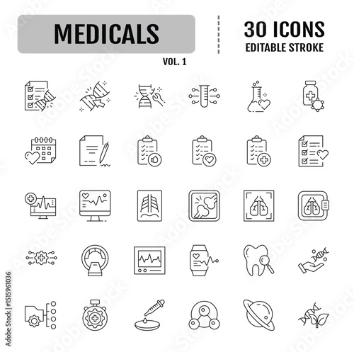 Medicals line icon set. Editable stroke. Vector illustration