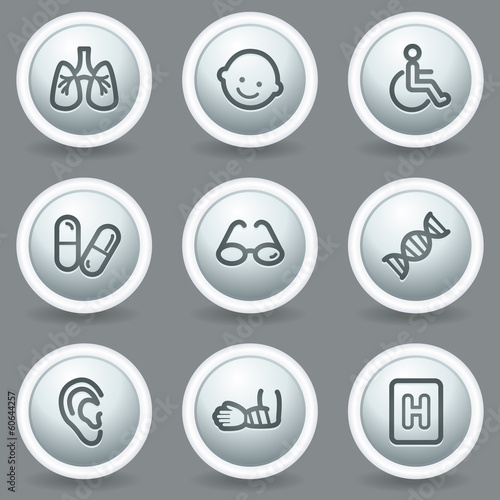 Medicine web icons set 2, circle grey matt buttons