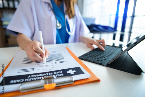 Medicine doctor hand working with modern digital tablet computer interface as medical network concept in