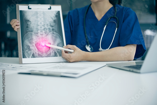 Medicine doctor touching on digital tablet and hologram modern virtual screen interface icons, Medical technology and futuristic concept.