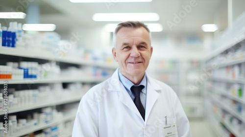 Medicine, pharmaceutics, health care and people concept - apothecary and senior man customer buying drug at drugstore