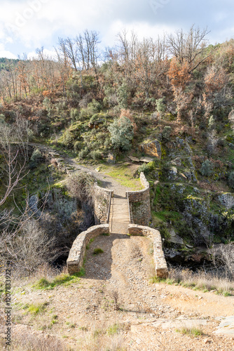 Medieval bridge called Matallana in the area of the black villages of Guadalajara, Spain