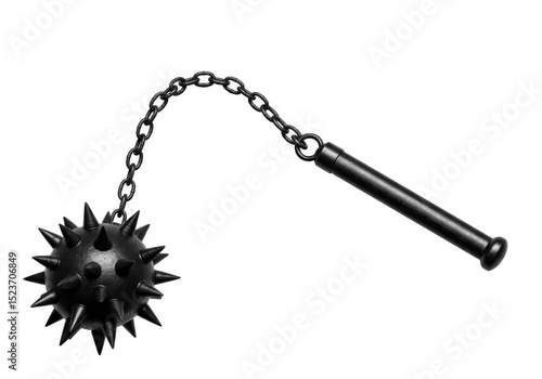 Medieval flail weapon with spiked ball isolated on white background