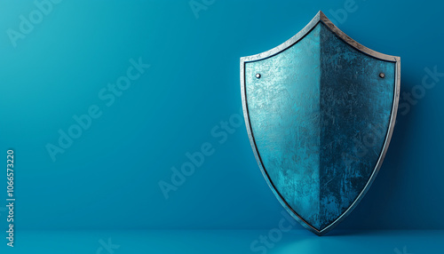 Medieval gameplay 3d Icon safety shield. symbol security safety icon. Knight ancient blank shield for design with Copy space in minimalistic style. 3d vector illustration. Blue background