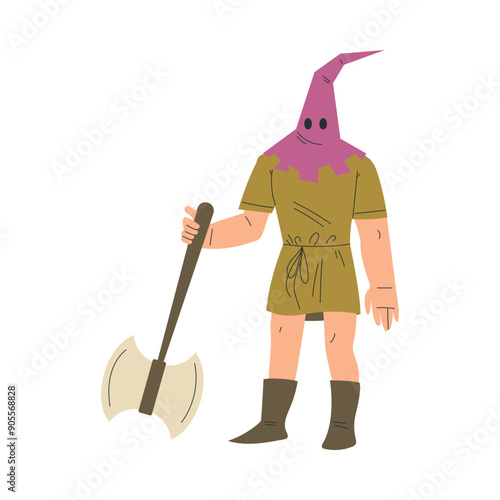 Medieval Man Headsman Character with Axe in Standing Pose Vector Illustration