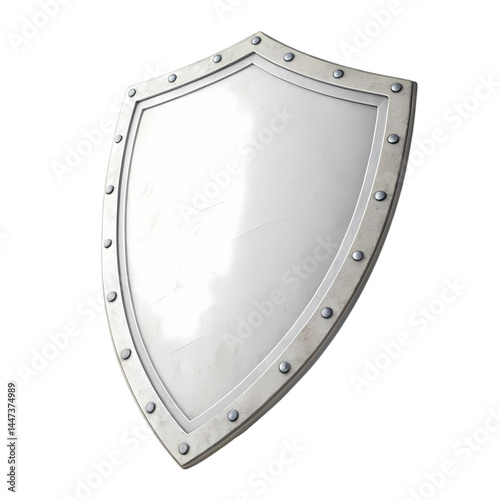 Medieval Shield Metal Silver Knight Protection History Antique Heraldry Defense Warrior Combat Vintage Armour Blank Template isolated on transparent background