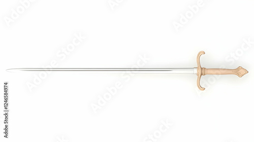 Medieval sword, top view, isolated on white background. Possible use historical illustration, game asset