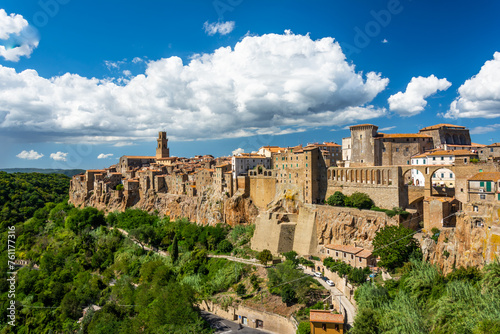 Medieval town of Pitigliano in the Tuscany in Italy during the sunny day in early autumn