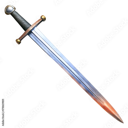 Medieval Viking sword with steel blade and bronze hilt on black background image
