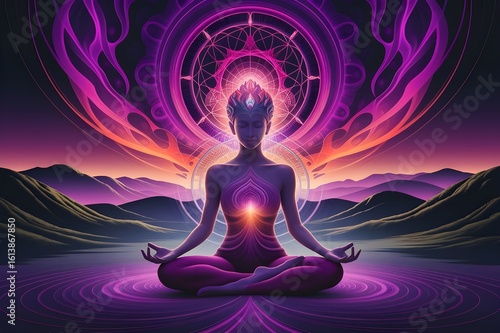 Meditation and Spiritual Yoga: Calming Silhouette Pose for Zen Peace and Chakra Healing