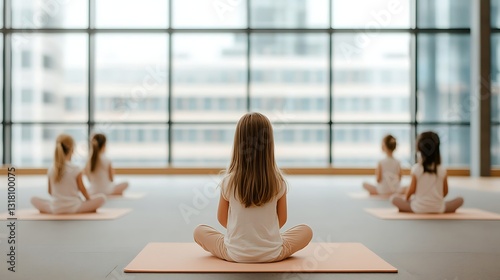 Meditation session for children indoor studio photography calm environment perspective on mindfulness