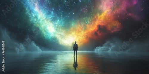 Meditation Silhouette Under Star-Filled Universe with Full Moon