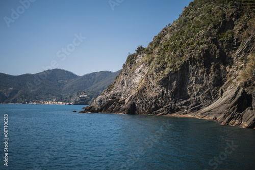 Mediterranean coast of sunny Italy - picturesque coast with rocks and boats - tourist route