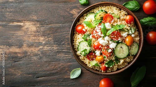 Mediterranean Couscous Salad with Cherry Tomatoes, Cucumbers, and Feta Cheese