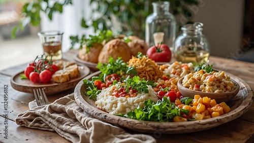 Mediterranean Platter: Fresh Salad, Pasta, Roasted Vegetables & Bread