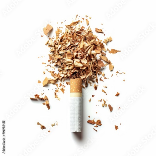 Medium shot of visual concept for No Tobacco Day with lungs and cigarette, isolated on a white