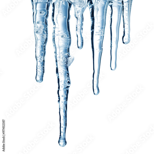 Medium-sized icicles hanging from a surface, isolated on a transparent background. Symbolizes winter, cold, and ice. Suitable for winter projects, seasonal decorations, and natural concepts.