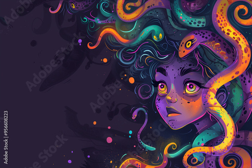 Medusa cartoon Gorgon with snake hair brings Greek mythology to life in Halloween parties and trick-or-treating for kids