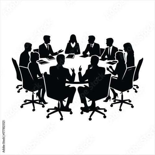 Meeting group discussion vector silhouette outline logo design concept illustration