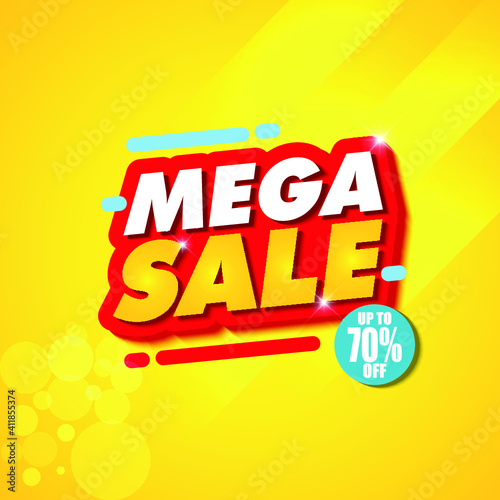 Mega Sale Banner Design Template with Yellow Background