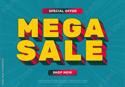 Mega Sale Banner with three-dimensional letters. Special offer, shop now.