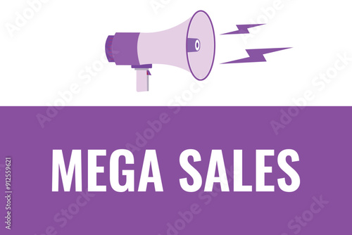 mega sales button, banner, label, template for website. mega sales text with colorful megaphone icon