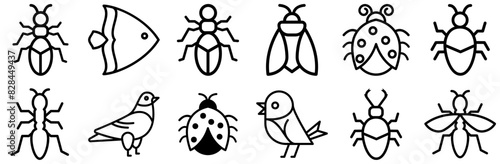 Mega Set Of Vector Animals Icons Silhouette Vector Logo Design Containing Animal,Winged-Animal,Insect,Roach,Bug Stroke Icon Collection. Vector Illustration