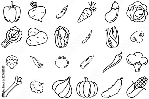 Mega Set Of Vector Vegetables Linear Icons Set Vector Symbols Apps, Websites Ui Designs Suitable For Food,Vegetable,Cabbage,Squash,Zucchini Vector Icon Set Linear Pictogram Pack